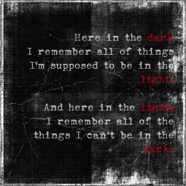 If you’re looking for sunshine and rainbows, e-mail me and I’ll send you any number of wonderful sites to visit – because you won’t find those here. What you will find is blunt, honest, sometimes (well. . . more than sometimes, truthfully) dark, but always unvarnished me.