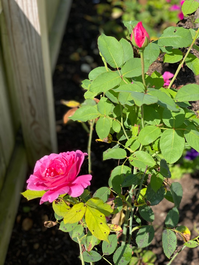So, when it came to my roses, it wasn’t a conscious decision – frankly, it just wasn’t at the top of the priority list. For people who may not be familiar with the challenge of having roses, I have several particularly difficult varietals – hybrid teas, floribundas, and grandifloras. I have zero qualms about pulling an underperforming bush out and replacing it, and throughout the 20 years I’ve lived here, I’ve probably had close to 80 different roses in my gardens. Roses (and when I speak of them, I mean the ones I have, not the climbers or the shrubs) require more care than most plants. They are prone to disease and fungus, multiple pests love them, and they require just the right amount of sun and water. Any one of these or a combination of all of them? You have a thorny bare stick growing out of the ground.